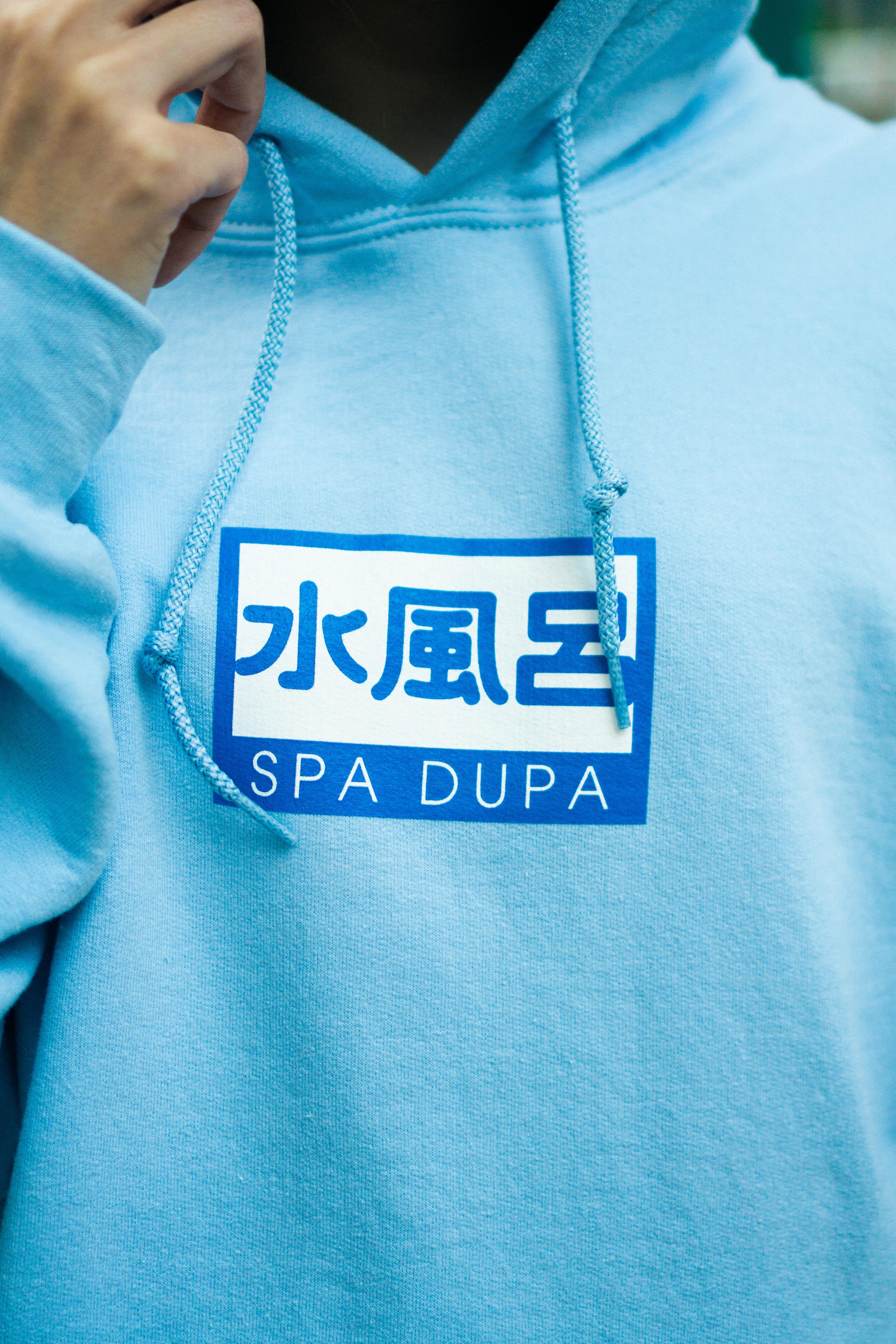 胸元に刻まれた「熱湯」と「水風呂」の文字で、心地よい交互浴を身につけられるパーカーに。